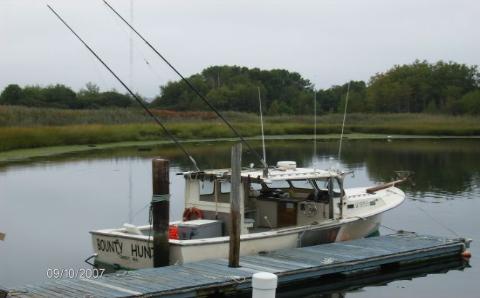 | THE BOUNTY HUNTER IS A 31 FT.  DOWNEAST STYLE CHARTER BOAT, BUILT BY J-C BOATS  OF HUDSON, NH. SHE IS BASICALLY A COMMERCIAL LOBSTER BOAT THAT HAS BEEN MODIFIED FOR CHARTER FISHING. SHE HAS A WIDE 12 FOOT BEAM, DEEP SHARP ENTRY, HARD CHIMES, AND FULL LENGTH KEEL. SHE IS AN EXCEPTIONALLY SEAWORTHY AND COMFORTABLE VESSEL TO FISH ON. THE BOUNTY HUNTER WAS CUSTOM DESIGNED WITH SERIOUS BOTTOM FISHING IN MIND. WITH THE CUSTOM ANCHOR TREE, WE ARE ABLE TO DOUBLE ANCHOR WITH PRECISION ON THE SMALLEST OF WRECKS AND BOTTOM FEATURES. THESE ARE THE MOST PRODUCTIVE PIECES SINCE THE AVERAGE BOAT CAN'T EFFICIENTLY FISH THEM, SWINGING ALL OVER THE PLACE ON ONE ANCHOR. THE DOUBLE ANCHORING ALSO MAKES FOR LESS TRIPS CANCELLED FOR WEATHER, WITH THE ANCHORS SET WE CAN COMFORTABLY FISH IN 25 KTS OF WIND WITH NO ROCKING AND JARRING ABOUT ON THE ANCHOR. ANOTHER UNIQUE FEATURE TO THE BOUNTY HUNTER IS; THE STARBOARD SIDE CABIN PANEL FLIPS UP PROVIDING OVER 20 FT. OF UNINTERRUPTED FISHING SPACE FROM THE STERN TO THE HELM, 11 FT. ACROSS THE STERN, AND ANOTHER 11FT UP THE PORT SIDE. AS YOU CAN SEE, WITH 42 FT. OF RAIL SPACE, THERE IS PLENTY OF ELBOW ROOM WHILE BOTTOM FISHING. THE REAR PANEL OF THE CABIN IS REMOVED DURING THE SPRING AND SUMMER SEASONS. THIS PROVIDES FOR A NICE OPEN AIR DESIGN AND EASE OF MOBILITY AROUND THE BOAT. NEW FOR '06 IS, A CANVAS "CURTAIN" TO BE SNAPPED IN, AT THE REAR OF THE CABIN FOR THOSE "NO SO NICE" DAYS, TO PREVENT SPRAY FROM BEING BLOWN BACK IN THE CABIN WHILE UNDERWAY. THE ENTIRE BOAT WAS OVERHAULED IN THE WINTER OF '04 AND WAS RE- POWERED IN THE SUMMER OF '05 WITH A 400 HP TURBO CHARGED AND AFTER COOLED, ELECTRONIC CONTROLLED IVECO DIESEL ENGINE. THIS ELECTRONIC CONTROLLED ENGINE REDUCES THE "DIRTYDIESEL EXHAUST" TO NEARLY NOTHING, MAKING DRIFT FISHING MUCH MORE PLEASURABLE TO THOSE FISHING OFF THE STERN. THE NEW ENGINE PROVIDES A 19 KT CRUISING SPEED AND 22+ KT TOP END. MAKING THE BOUNTY HUNTER THE FASTEST 6 MAN BOAT IN THE FLEET. UP FORWARD THERE IS A N ENCLOSED CABIN. CONSISTING OF A V-BERTH, CONVENIENT FOR NAPPING ON THE WAY TO THE GROUNDS. THERE IS ALSO A FULL SIZED COMMODE, AMONG WITH PLENTY OF DRY STOWAGE ROOM FOR YOUR GEAR. THE BOUNTY HUNTER HAS ALL THE NECESSARY ELECTRONICS AND SAFETY FEATURES FOR A SAFE AND PRODUCTIVE DAY ON THE WATER, THESE INCLUDE BUT ARE NOT LIMITED TO; ELECTRONICS *GARMIN 3010 CHART PLOTTER / WITH FISH FINDER BLACK BOX *LOWRANCE x-38HD CHARTPLOTTER/ BOTTOM MACHINE *LOWRANCE "STRUCTURE SCAN" (SIDE SCANNING SONAR) *RAYTHEON 24 NM RADAR *TWO ICOM VHF'S *HANDHELD GPS AND VHF FOR EMERGENCY BACKUPS *KENWOOD STEREO WITH SIRIUS SATELLITE RADIO, SO YOUR CHARTER CAN ENJOY THERE FAVORITE MUSIC WHILE FISHING THROUGH THE CRYSTAL CLEAR BOSE MARINE SPEAKERS SAFETY EQUIPMENT THE BOUNTY HUNTER CARRIES ALL THE NECESSARY SAFETY EQUIPMENT REQUIRED UNDER U.S.C.G REGULATIONS. ALL EQUIPMENT IS PERSONALLY INSPECTED CAPT. ERIC AND KEPT IN TOP CONDITION AT ALL TIMES.  |